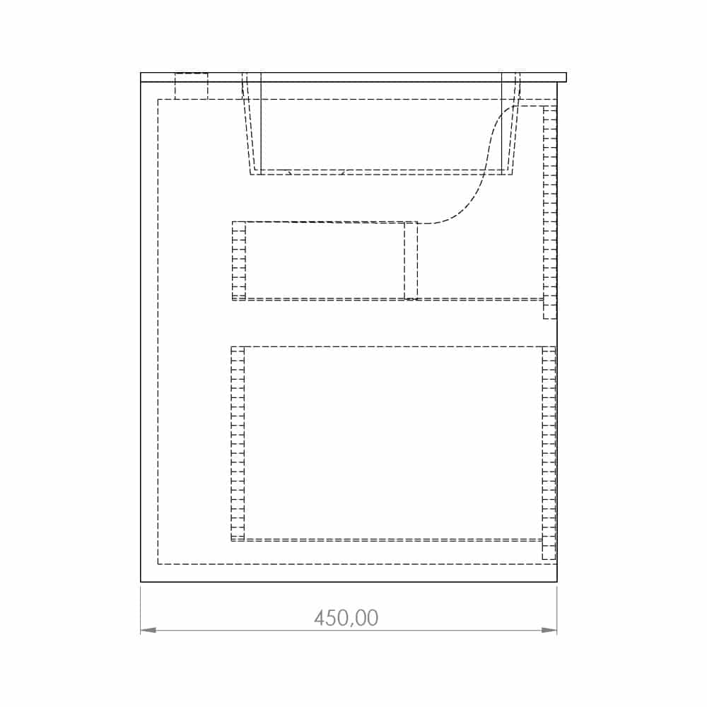 Der medfølger 1 stk. udsparingsskuffe. Vi anbefaler, at man anvender en pladsbesparende vandlås. Den kan tilkøbes hos os eller hos en VVS-grossist.