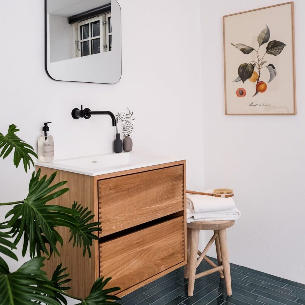 Et kompakt snedkermøbel med fingertappede samlinger på skuffen.