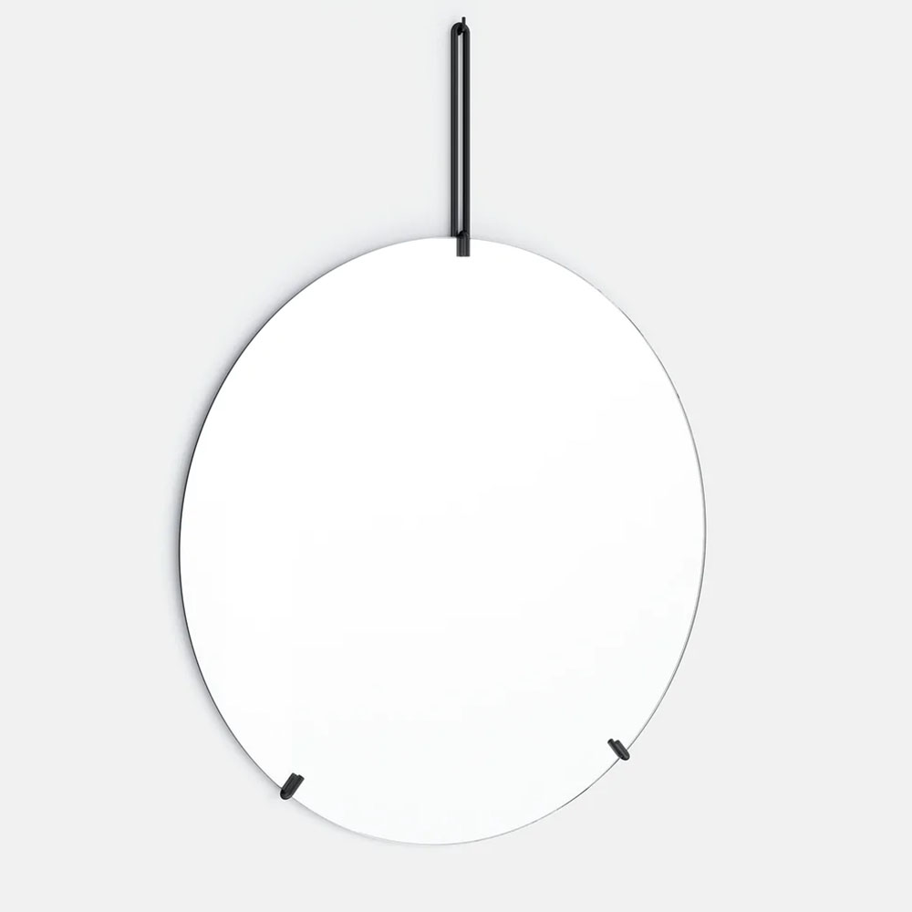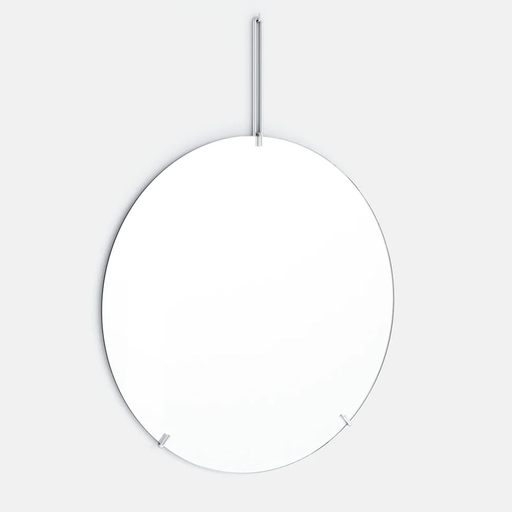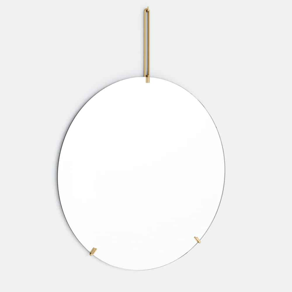 Runde spejle uden ramme med ophæng på en tynd metal holder.