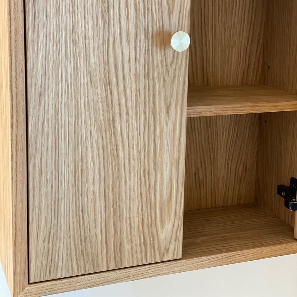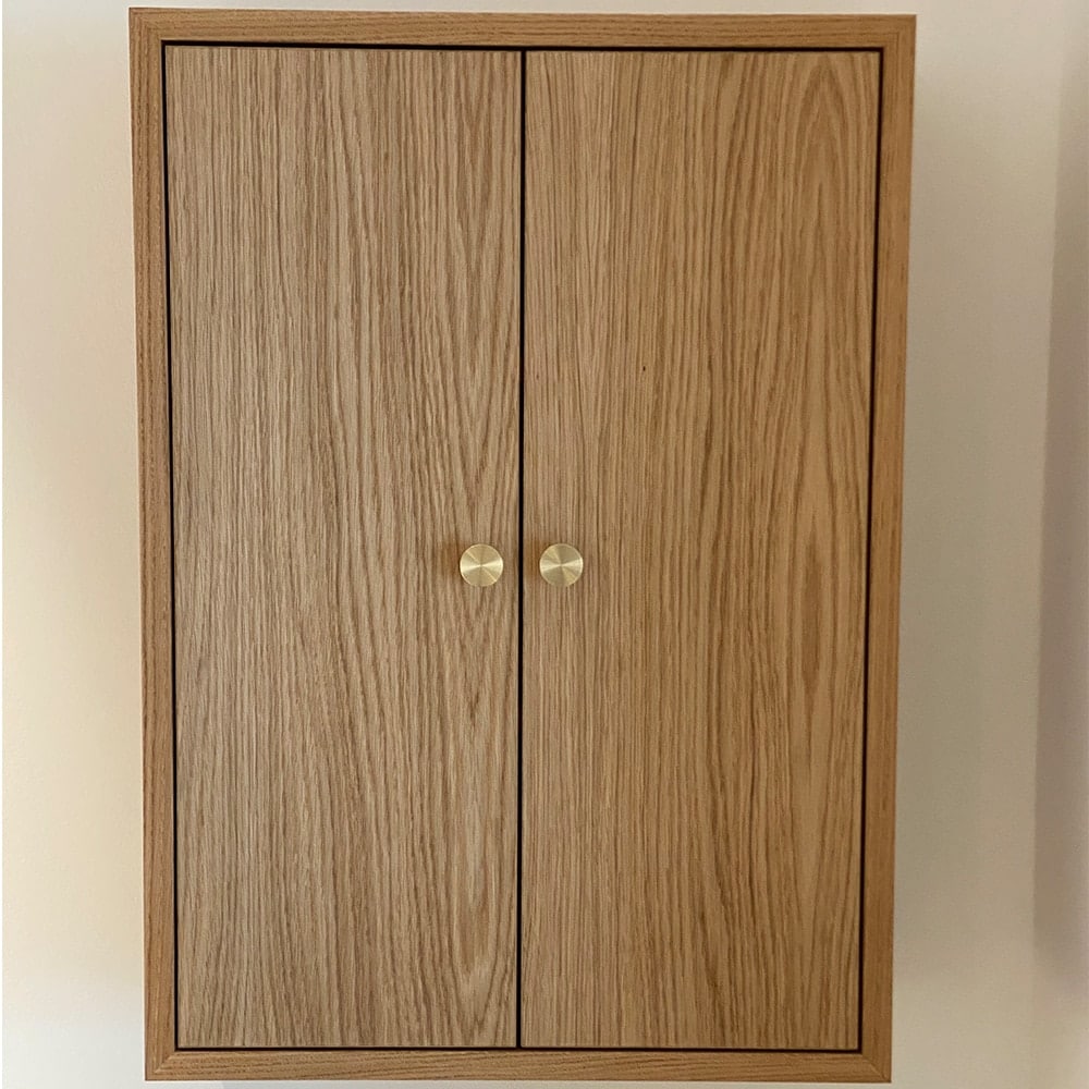 This elegant cistern cabinet is made of wet room MDF, which is covered with oak veneer. By using wet room MDF, the cabinet can withstand the constantly humid climate that is typically found in bathrooms. The cabinet fits over a cistern, for example, as the cabinet is only 20 cm deep.