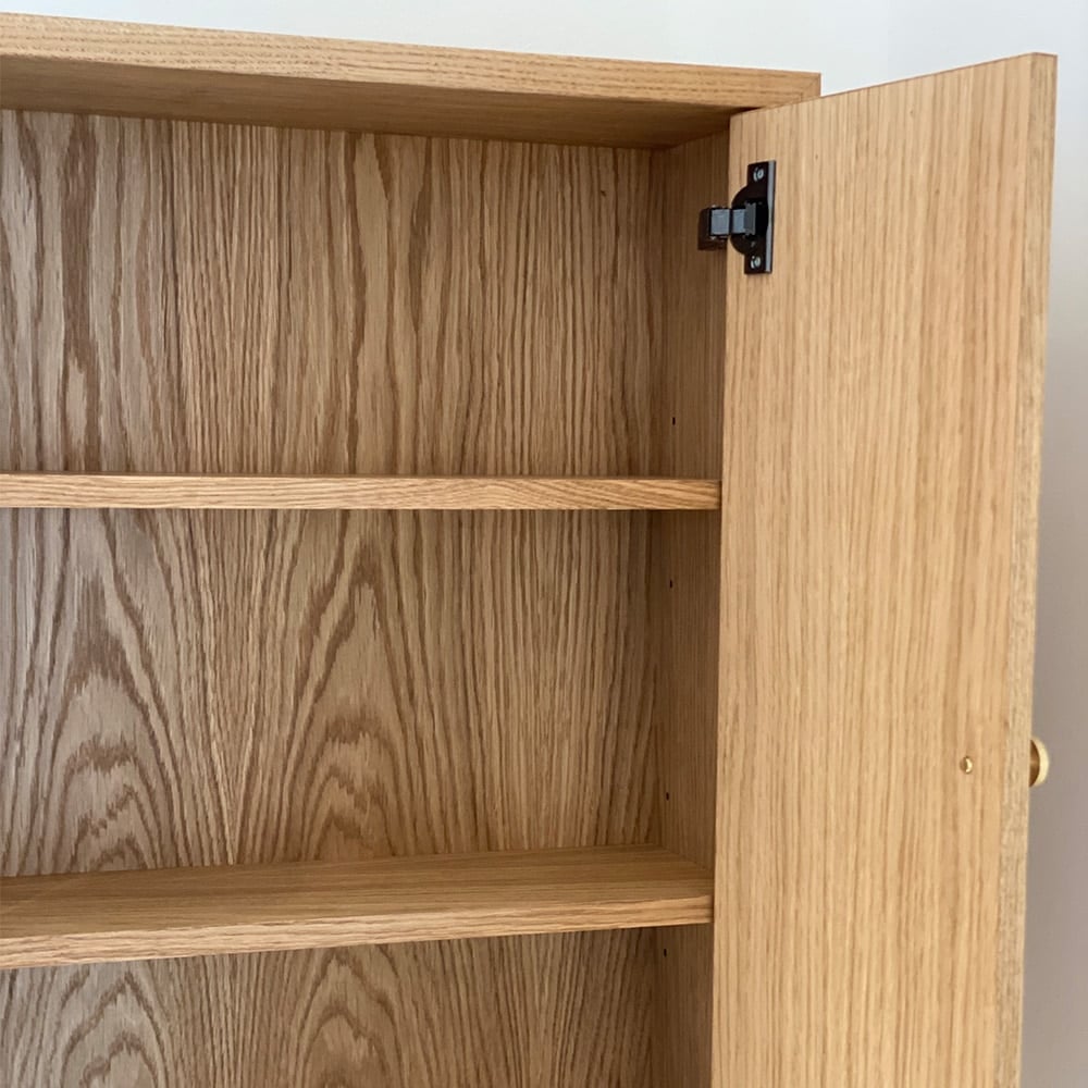 The cabinet measures 50 x 70 x 20 cm and also comes with brass knobs and two adjustable shelves.