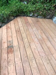 Today, terraces are made from many different materials. The typical Danish types of wood are oak, pine, spruce and larch. The material is often chosen based on how people want to decorate the terrace and/or how the wood needs to be maintained. Many people choose to make their terrace in hardwood, as these are strong boards that can withstand a lot – but it is also a much more expensive terrace to have made. The typical hardwood species are ipé, jatoba, mahogany and teak. These are all exotic woods. They have all the properties that they are super nice, have a longer shelf life and over time they get a super nice grayish sheen if they are not treated. The “new” is composite wood. Composite consists of a mixture of wood (60%), recycled plastic (30%), binder (10%) and dye. The composite is easy to install, maintenance-free and environmentally friendly. It is a matter of taste and often economics that determines what you choose. For example, the jatoba (shown in the pictures) costs approx. NOK 1,500 per m2 incl. delivery and installation, which is cheap in the hardwood category – but still an expensive choice of material. At Focus Plus, we prefer to use FSC-certified wood, as it means sustainable deforestation and the protection of flora and fauna.