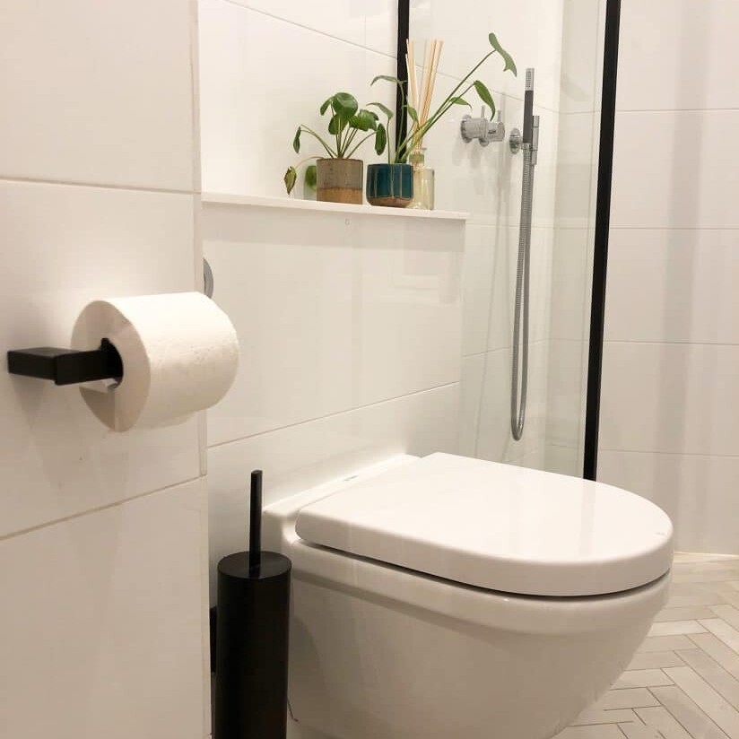 Toiletpapirholder og -børste i sort metal fra Unidrain