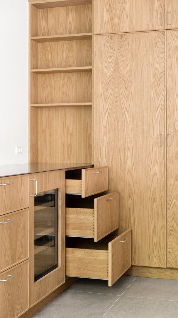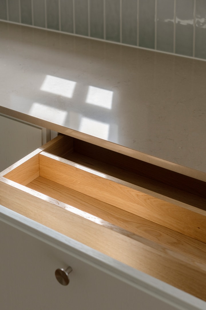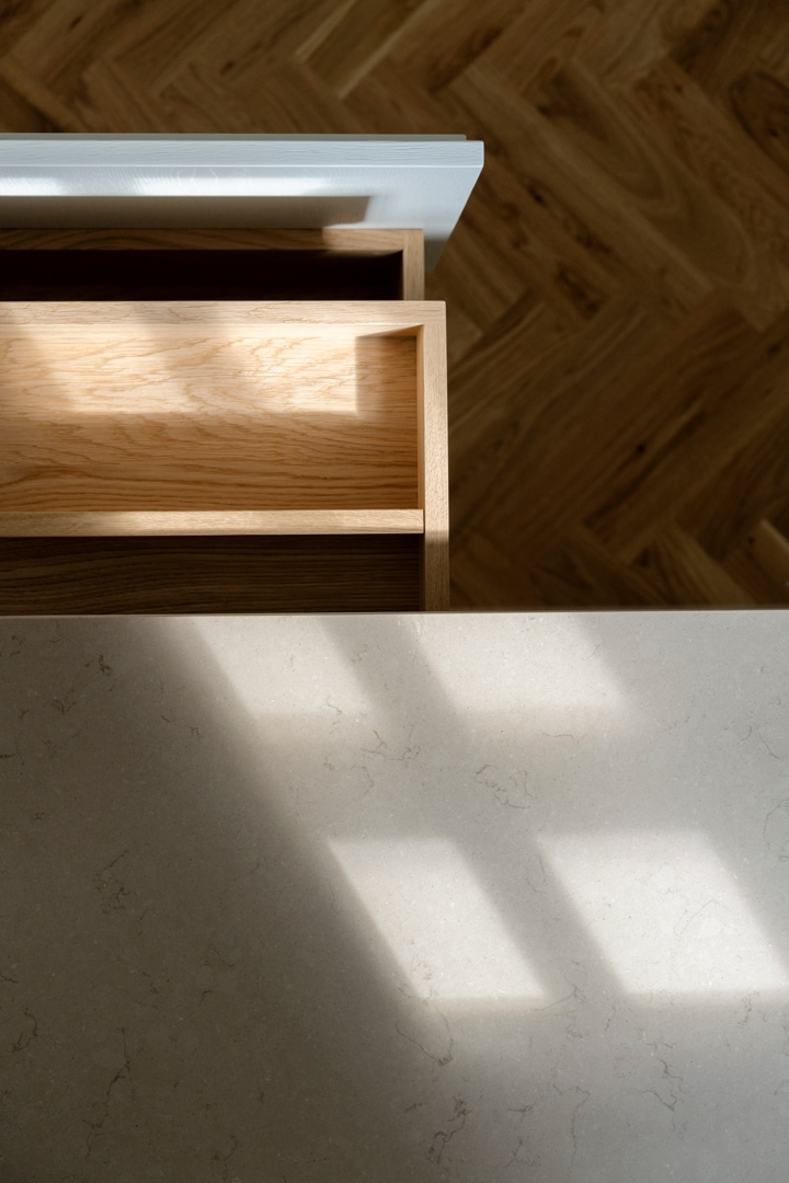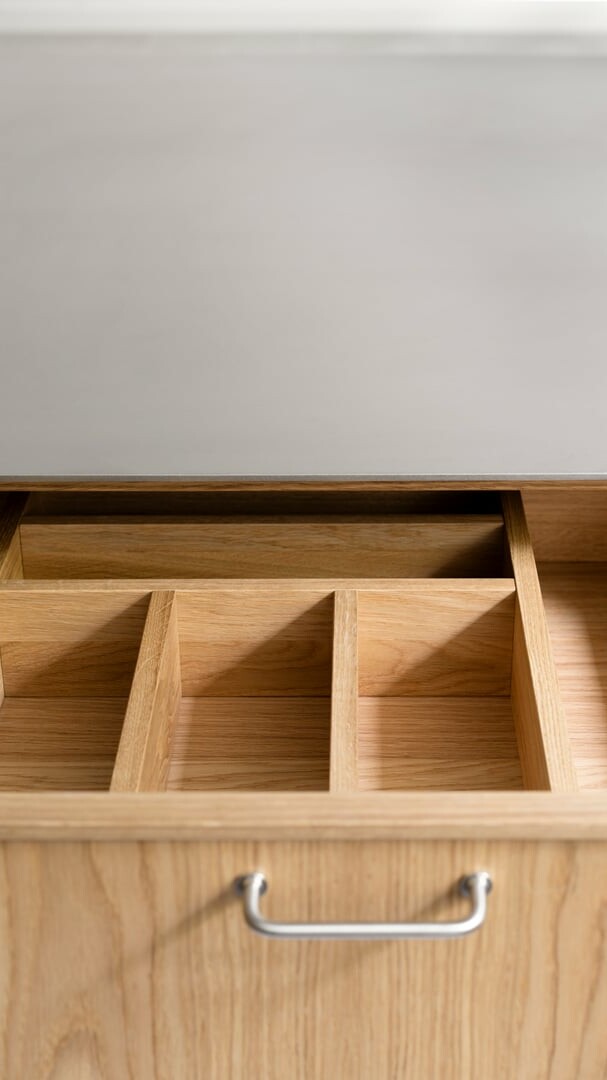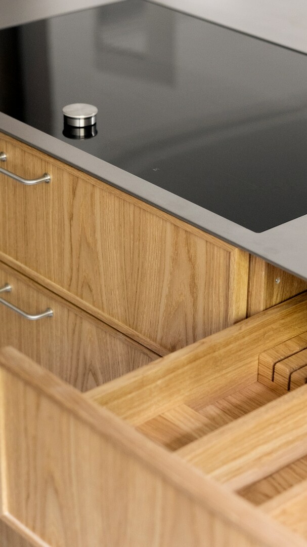 Vi arbejder med ædle træsorter og slidstærke materialer, der ikke kun ser fantastiske ud, men også modstår daglig brug uden at miste deres skønhed