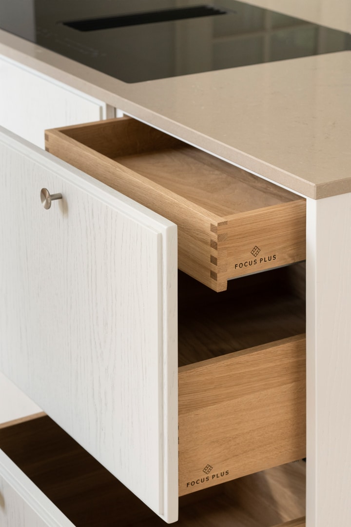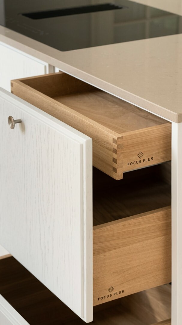 Hos Focus Plus er vi specialister i at skabe snedkerkøkkener af højeste kvalitet, hvor design, funktionalitet og håndværk går op i en højere enhed. Vores køkkener er ikke bare et sted at lave mad – de er rammen om livet i hjemmet, hvor hver detalje er nøje gennemtænkt og udført med omhu.