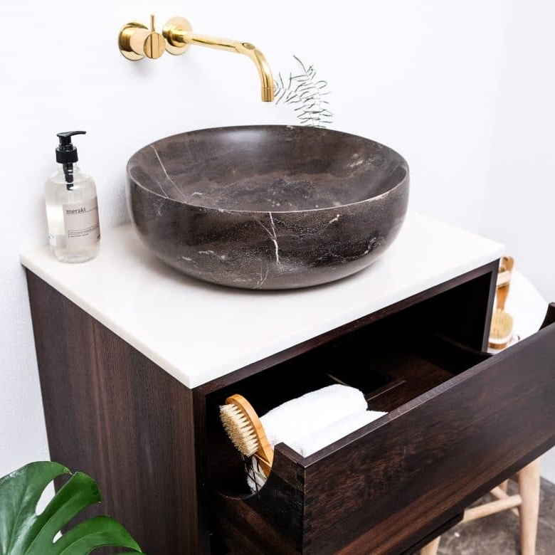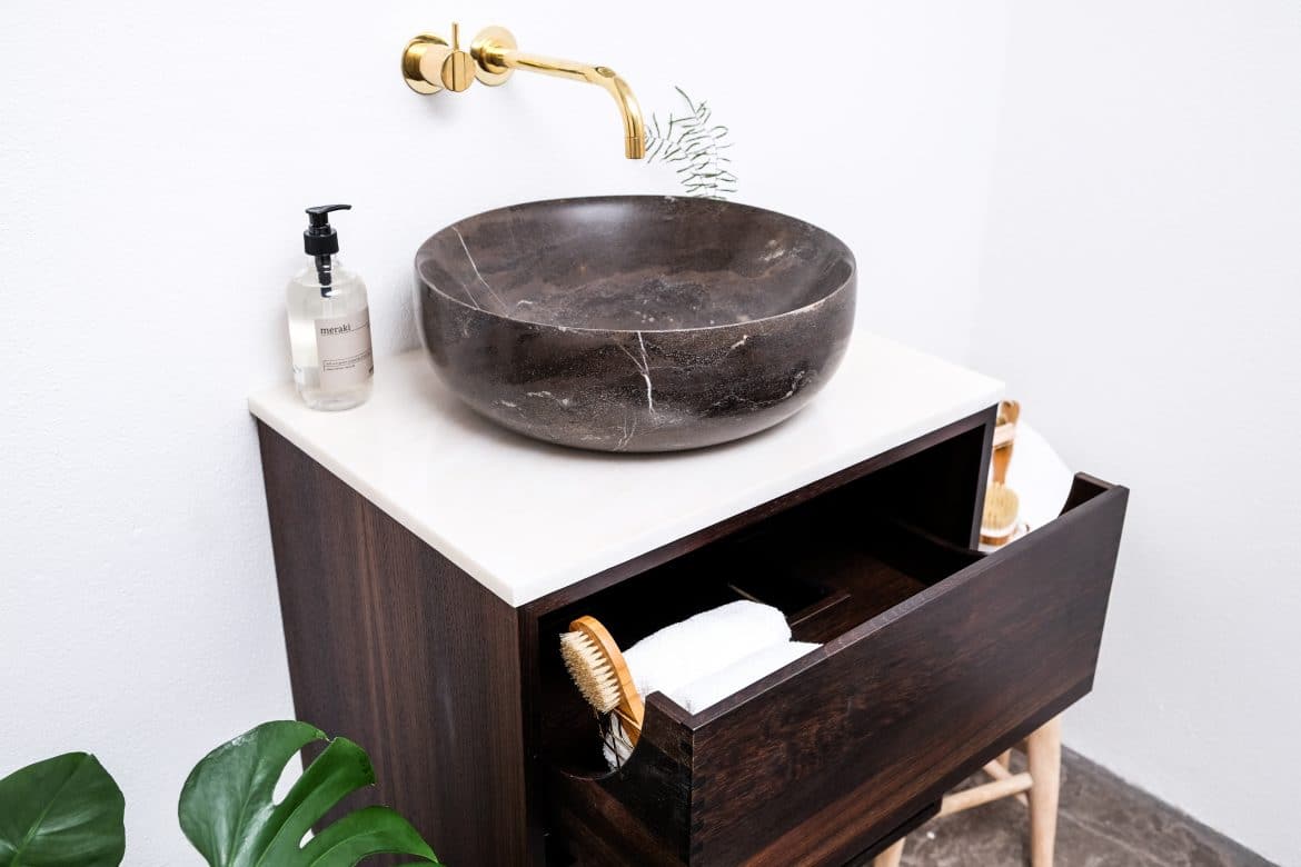 Vi elsker det naturlige materialeunivers og vores kendskab til materialernes individuelle kvaliteter, er fundamentet for dette møbel og vores videre udvikling af badeuniverset, der kommer til at byde på meget meget mere.